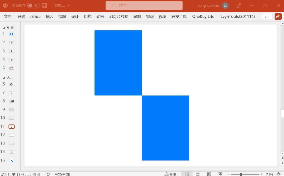 ②选中这两个图形,使用 iSlide 插件→补间