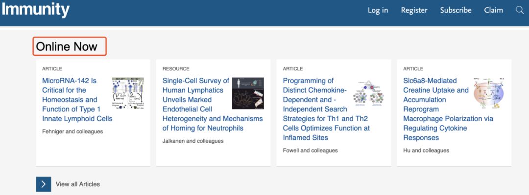 一般情况下,影响力比较高的重要学术期刊都会发表一些研究领域的最新科研成果,比如《Nature》、《Cell》等,都会发表一些某领域内的重要成果。所以说,关注这些重要期刊就是追随本领域科研大佬脚步的有效办法之一。而且这些期刊往往会“online”最新接受的文章,而这些文章通常还没有被PubMed等数据库收录。