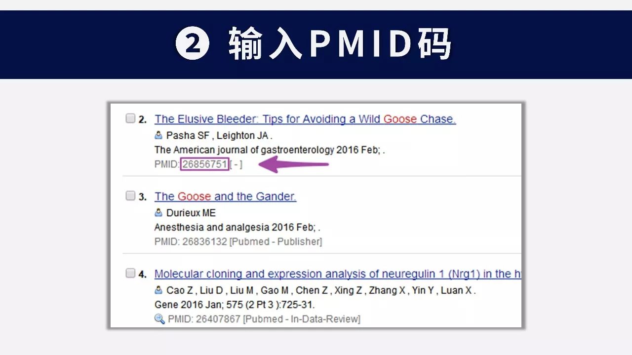 ❷ 输入PMID码
