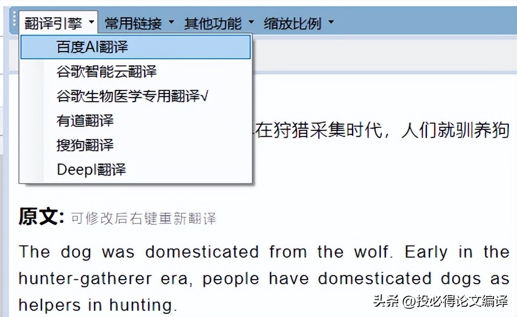 英译汉方面除了知云文献翻译中的【谷歌智能云翻译】外,其他的翻译引擎效果半斤八两。作为最常规的百度翻译,经过小虎编辑的测试也能发挥出不错的英译汉效果,所以英译汉还是根据各自的需求进行选择,通常情况下百度学术也能满足我们的需求了。