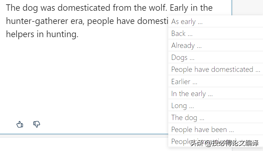 如果想进一步更换翻译结果,Deepl也支持个性化定制,点击对应的单词,下拉列表中会给出多个选择供我们使用,可以根据我们的需要将翻译结果进行不同程度的个性化,比如小虎编辑这里的实例中,可以将as early as换成Early或者As early等开头。不管对应哪种选择,Deepl都会自动优化后面的句子,使整个翻译的句子成为一个整体,在翻译效果上可以说十分优秀了。