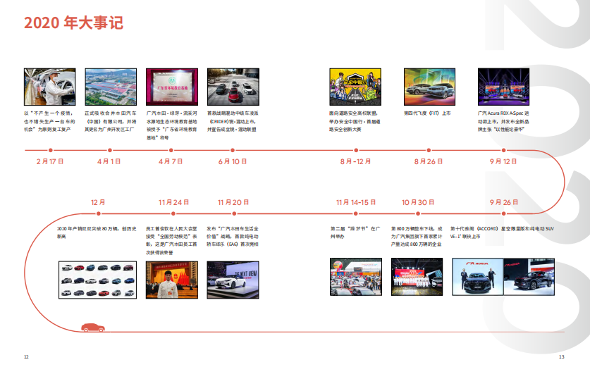 来看看广汽这页时间轴,其中的节点还是不少的,但是用线条连接,整体就连贯了许多。