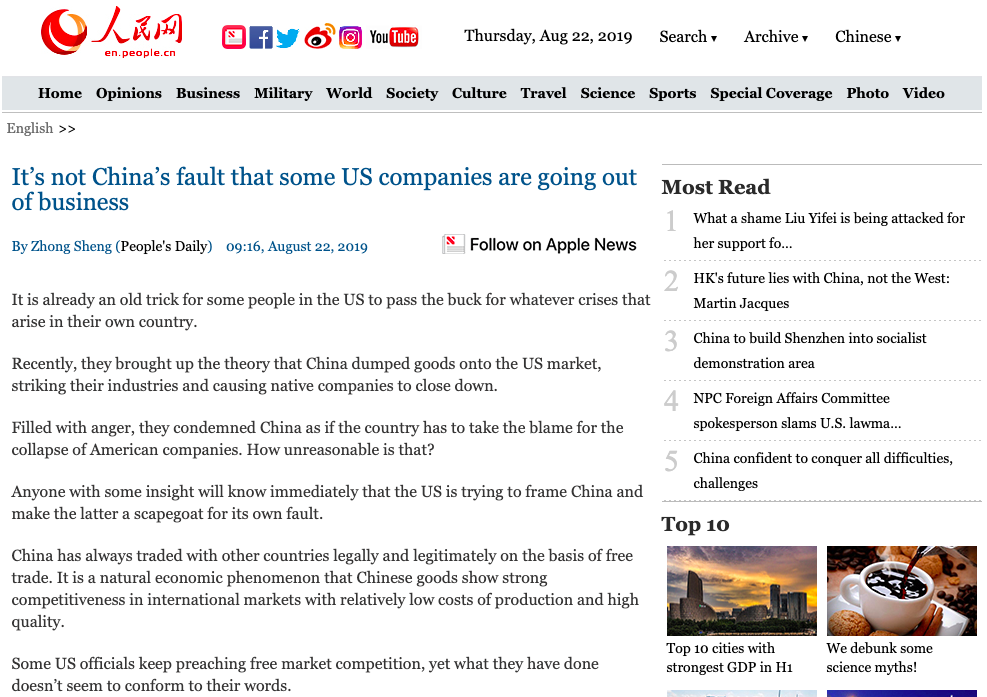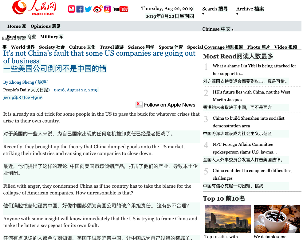 我们用谷歌翻译来作对比。这是原始英文网页,人民网英文版的一篇报道:
