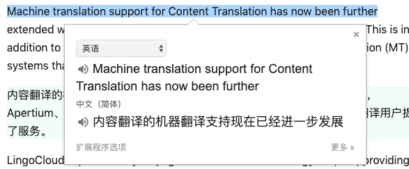 如果不想翻译整篇文章,只想翻译一段,诸如谷歌翻译、百度翻译等插件也提供“划词翻译”功能,直接选中一段文字就能提供翻译。