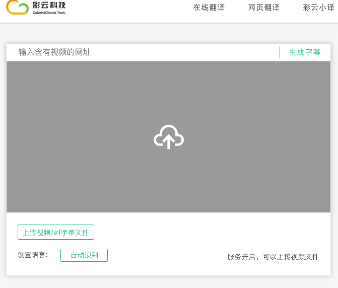 如果你想添加字幕和翻译的是本地视频而非在线视频,也可以到彩云小译的官网使用视频生成字幕和翻译功能: