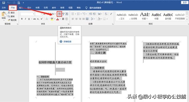 如果转换成Word文档之后的文本格式你感觉不满意,你可以全选整篇文档 -- 点击菜单栏的“开始”选项卡 -- 在“字体”工具组中点击“清除所有格式”按钮 -- 最后重新整理整篇文档即可。