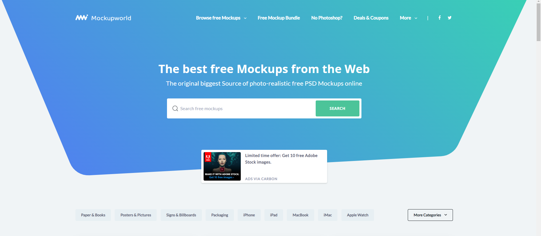 2、MockupWorld:https://www.mockupworld.co/。如网站名字,不错的样机网站很多分类