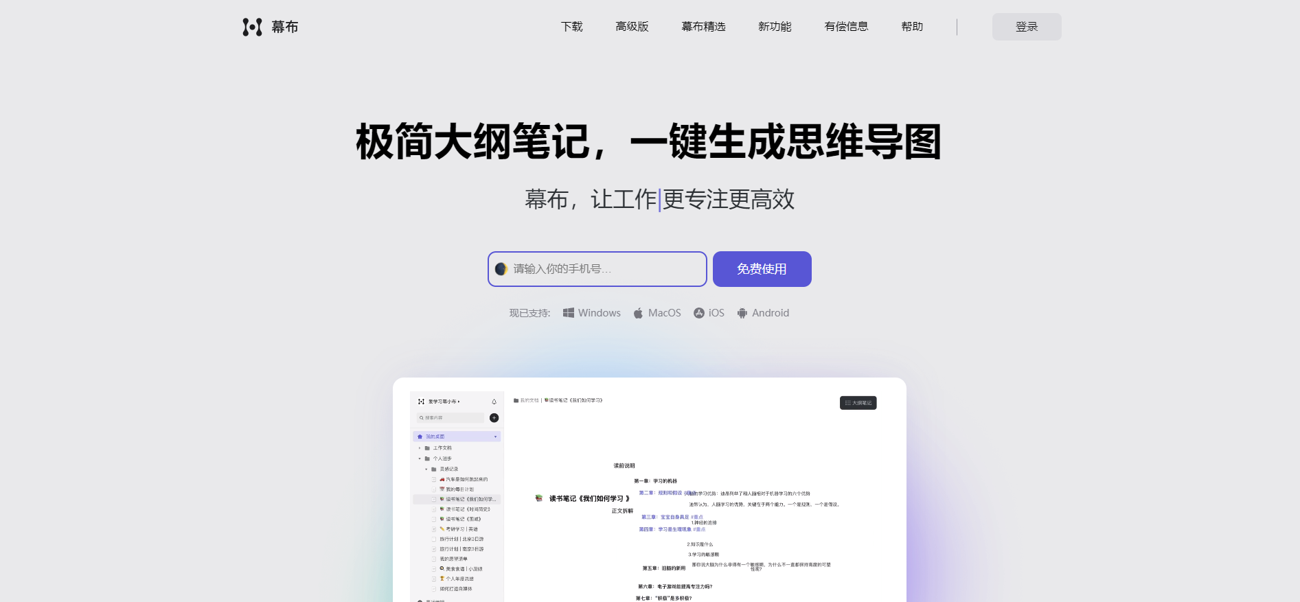 4、幕布:https://mubu.com/,强烈推荐,小编都在用的思维导图工具,电脑手机都方便!