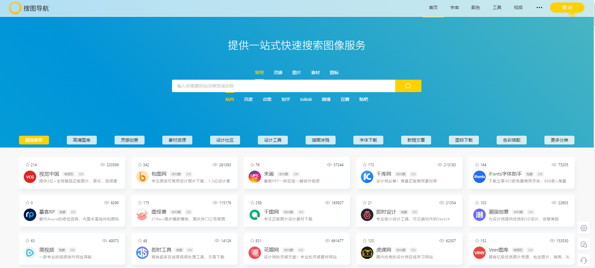 2、搜图导航:https://www.91sotu.com/。图片搜图导航网站,汇总的比较全面,收藏这一个差不多就够了