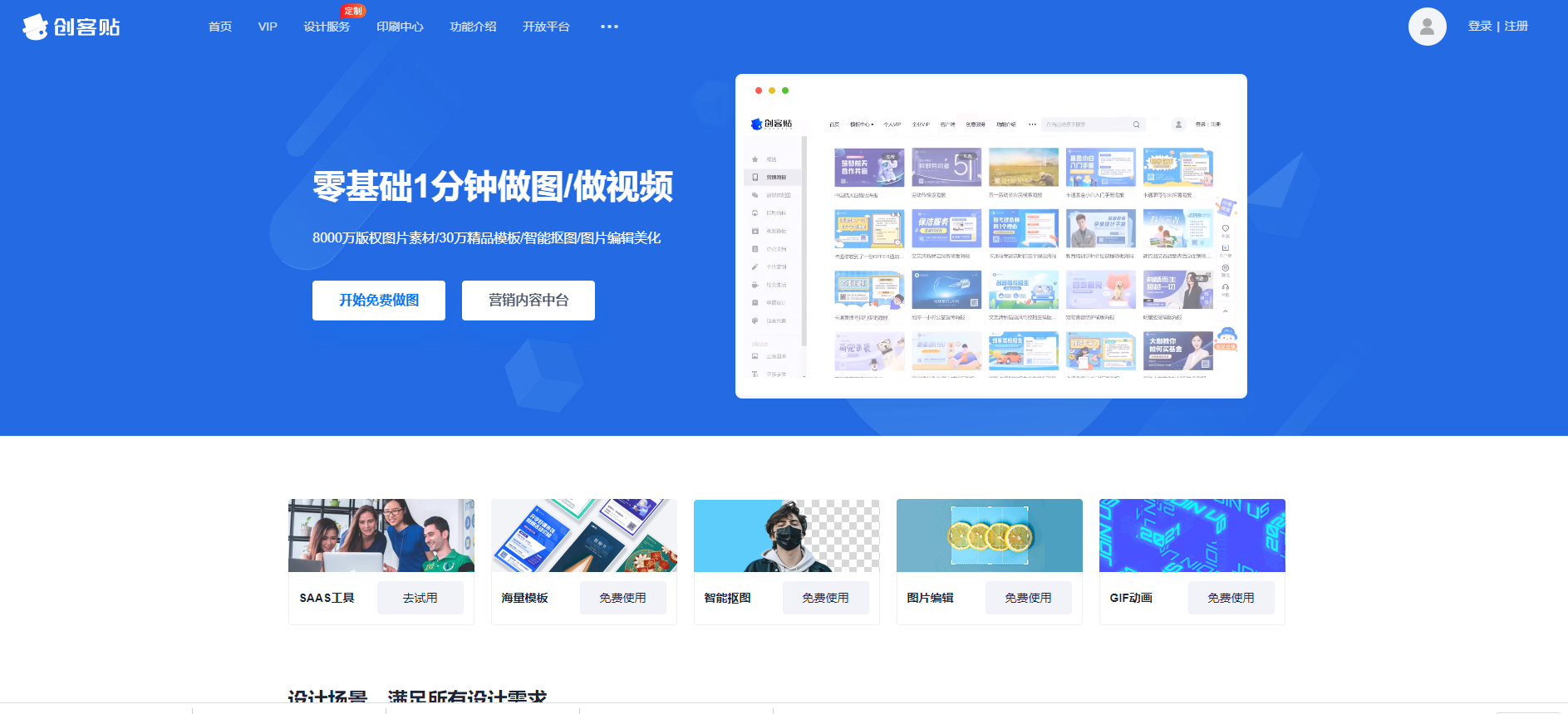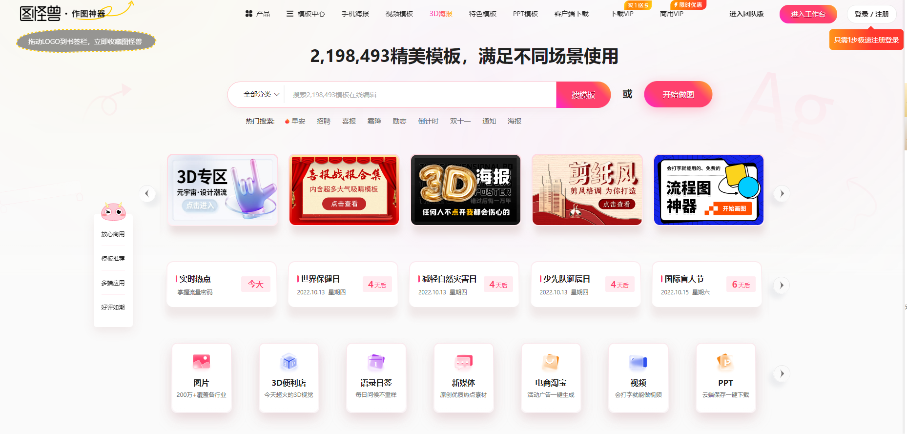 3、创客贴:https://www.chuangkit.com/。同样也是一个在线设计网站,跟前两个差不多。大家可以自己看一下哈~