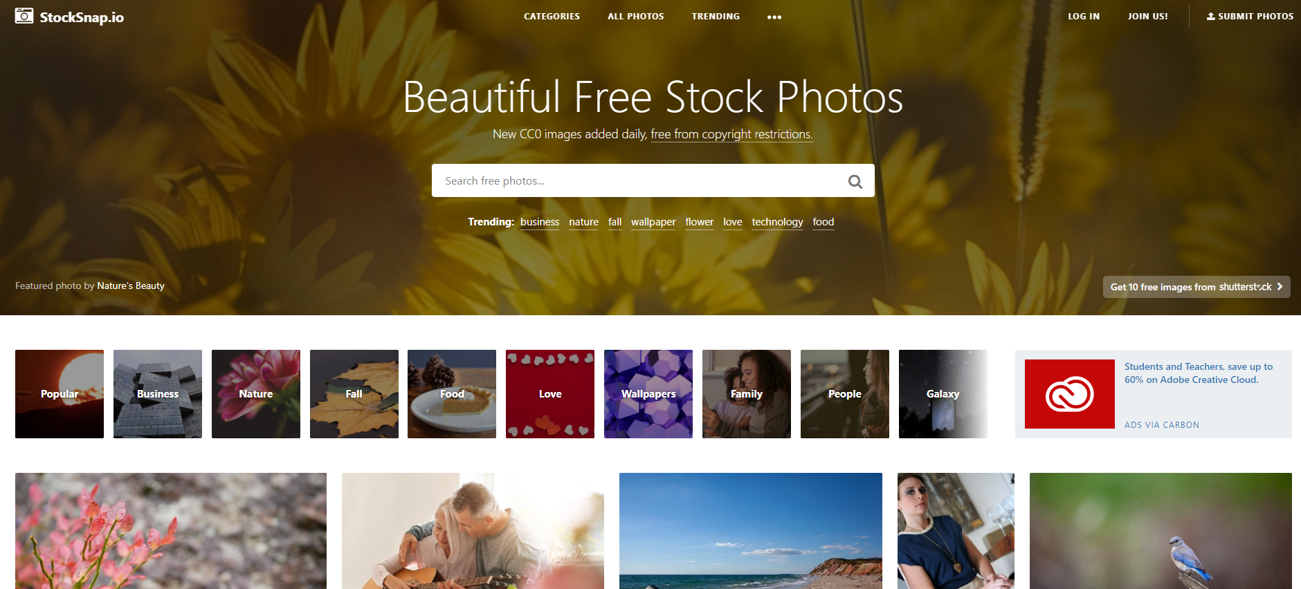 5、Stocksnap:https://stocksnap.io/,国外知各图片网站创意的图片很多!