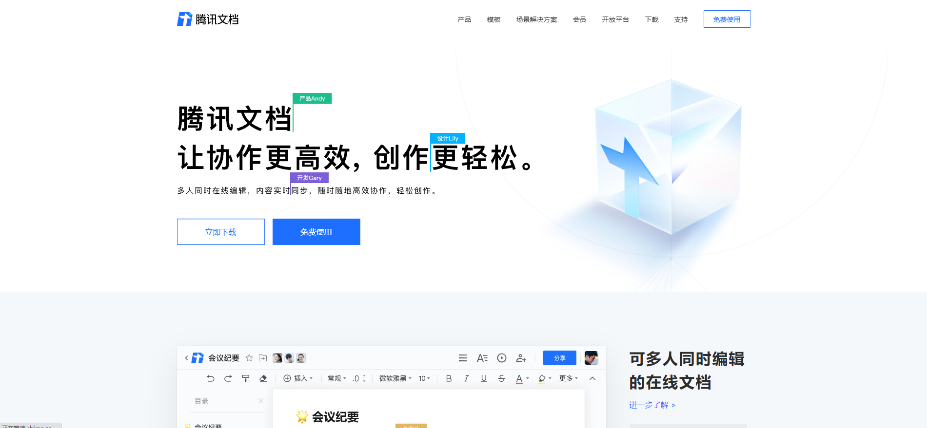 3、腾讯文档:https://docs.qq.com/。腾讯官方出品,在线office文档工具,电脑手机都方便!