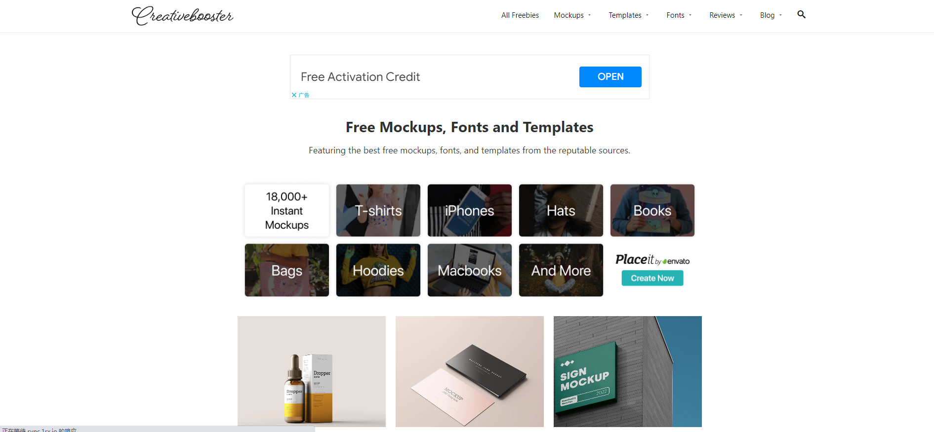 3、Creativeboostcer:https://creativebooster.net/。很多免费资源,不错的样机网站推荐收藏哦!