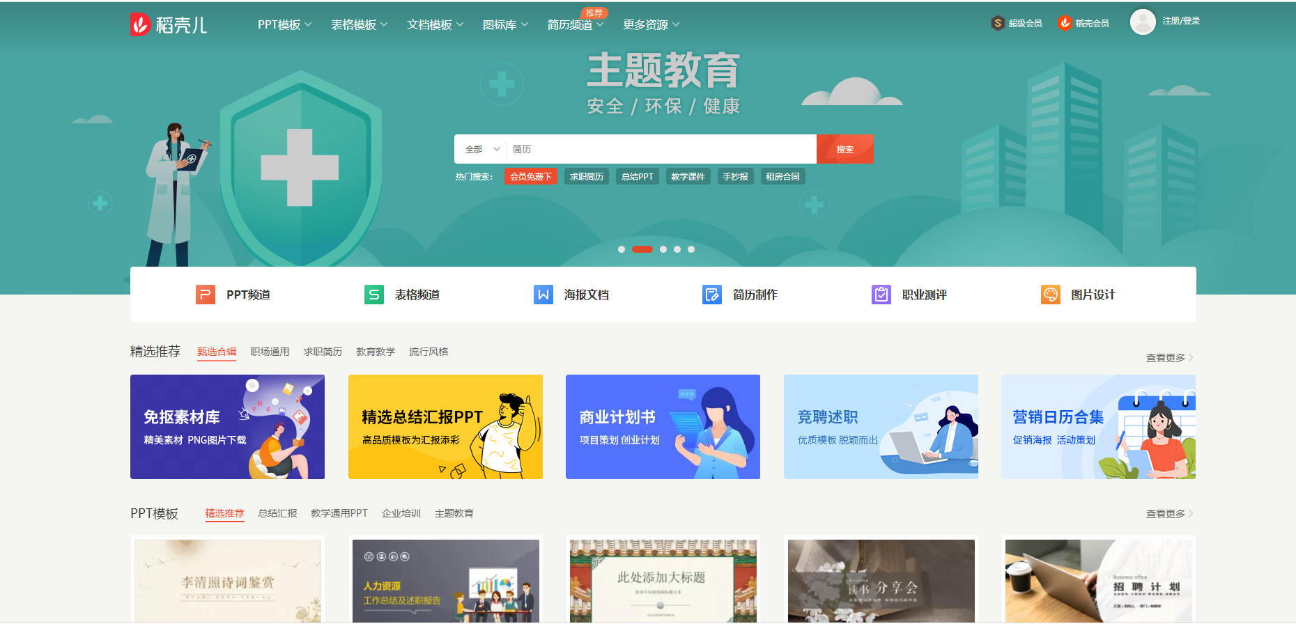 3、稻壳儿:https://www.docer.com/。国内知名的PPT模板网站金山WPS出品,免费的也有,主要是需要会员