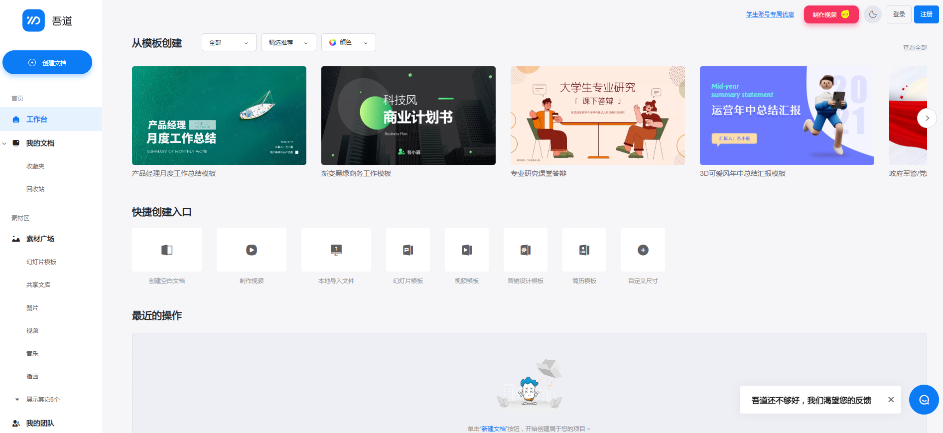 1、悟道PPT:https://www.woodo.cn/。可以在线制作PPT,有模板