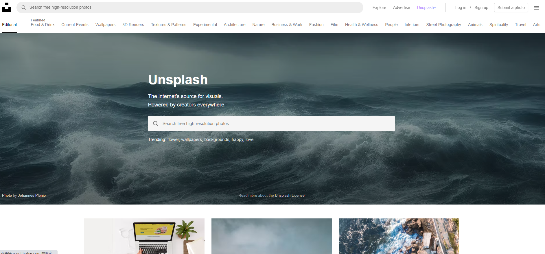 2、Unsplash:https://unsplash.com/。第二推荐的一个网站!也很好哦!国外最大的免费图库之一,免费可商用,支持英文搜索