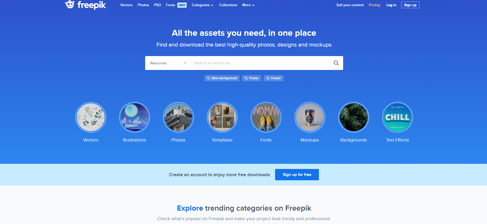 2、freepik:https://www.freepik.com/。质量非常高的一个素材综合网站,什么格式都有,付费下载,每天有几张免费下载额度。墙裂推荐!