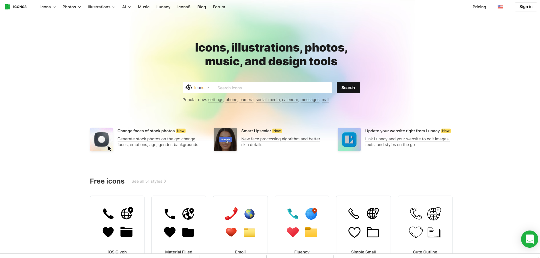 3、Icons8:https://icons8.com/。英文搜索,整体素材质量也不错!
