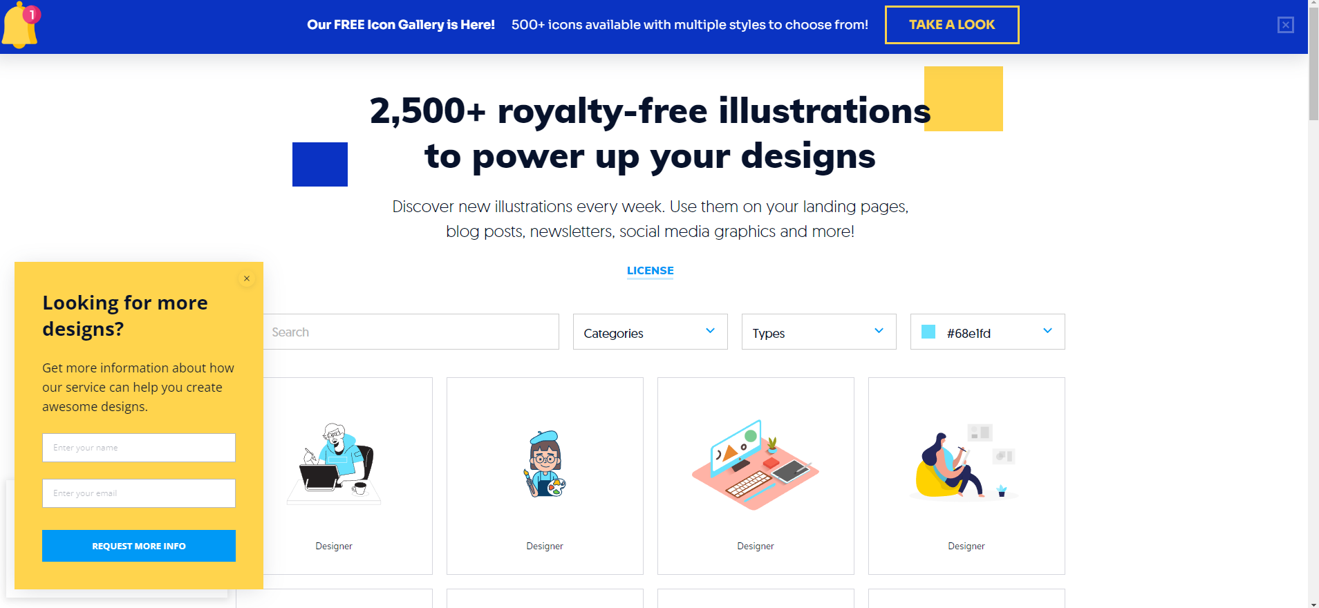 2、Gallery:https://gallery.manypixels.co/。国外插画网站,就是网络不太好,加载不太快很常用的!