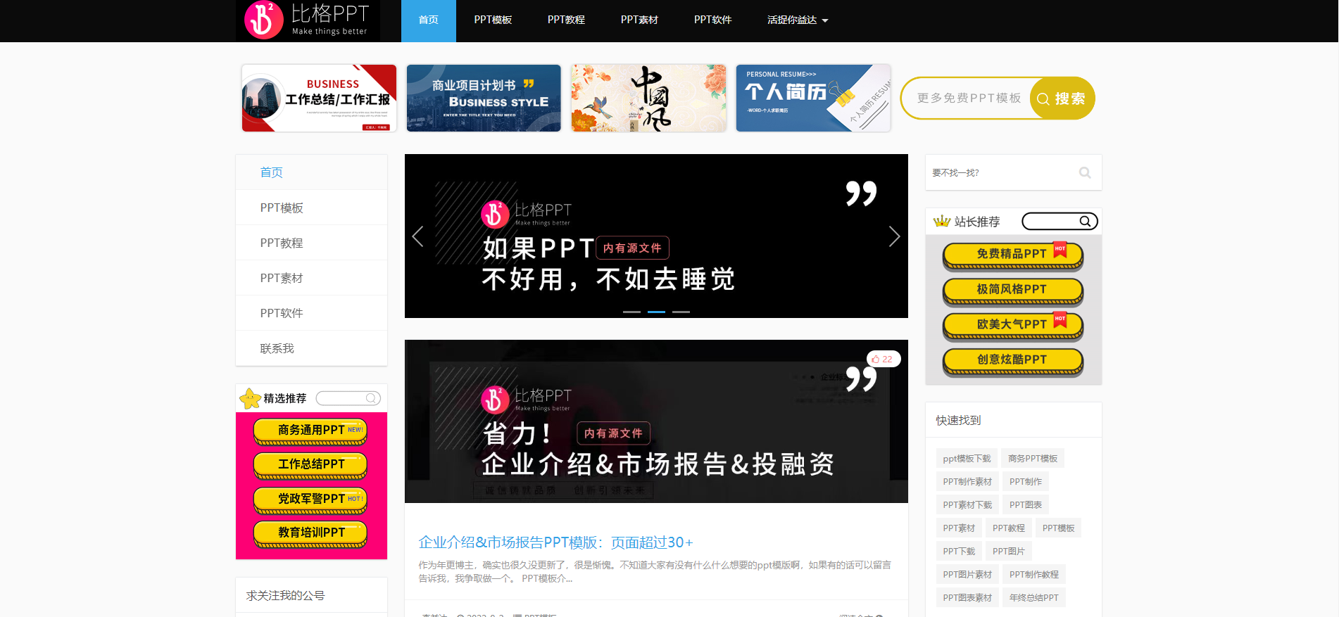 4、51 PPT:http://www.51pptmoban.com/。国内知各的PPT模板网站,免费很多模板质量层次不齐,需要筛选