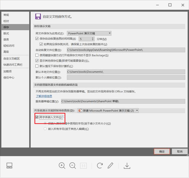 所以,我们做完PPT后为了防止出现这种情况,最好在保存文件前选择字体嵌入。