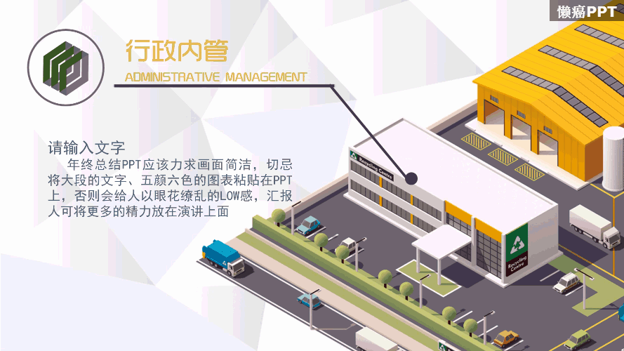 这款PPT的结构主要分为:工作回顾、工作亮点和明年规划,基本符合了大部分本土企业年终报告的结构,既然是模板,就需要使用者根据需要适当修改,切不可削足适履