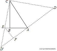 【解析】一般我们在涉及到旋转的题目的时候,要考虑到旋转可分为顺时针旋转和逆时针旋转,这道题这个因素不是主要的影响因素,而是其中的一个单词"直线",就这道题而言,E可能在线段BC上,或者在CB延长线上,或者BC延长线中,具体要根据画出图像来定。