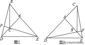 【分析】(1)把△ABC绕点A旋转到图1,根据旋转的性质,可以证明△ABD≌△ACE,即可得BD、CE的关系;