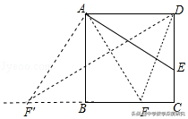 当点F落在BC的延长线上的点F′时,如图,同样可证明Rt△ABF′≌Rt△ADE,得到BF′=DE=3,则CF=BC+BF′=7,由勾股定理可求DF的长,即可求解.故可求答案为:√17或√65;