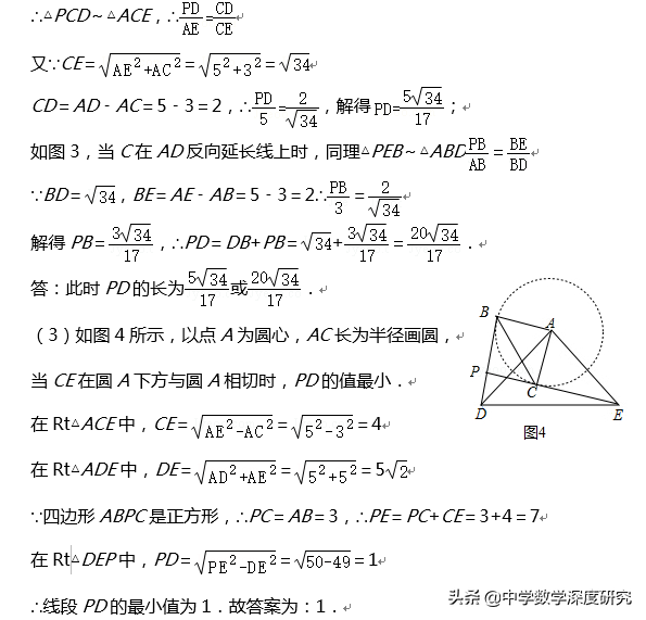 (3)根据旋转的性质即可知旋转过程中线段PD的最小值.