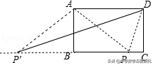 【解析】如图,当矩形ABCD绕点A顺时针旋转,当点D落在射线CB上的点P处时,利用旋转的性质得AP=AD=5,再利用勾股定理计算出BP=4,则PC=1,接着利用勾股定理计算出DP的长;当矩形ABCD绕点A顺时针旋转,当点D落在射线CB上的点P′处时,利用同样的方法可计算出DP′的长.