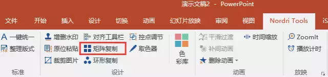❶ 单击选择小圆,进入 Nordri Tools ,选择【矩阵复制】;