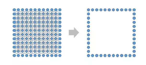 这时,你会发现小圆点已经分裂成了以下这样,横向数量和纵向数量决定了此图的比例,小圆本身的直径和间距决定了排列后的图形总长度及密度。
