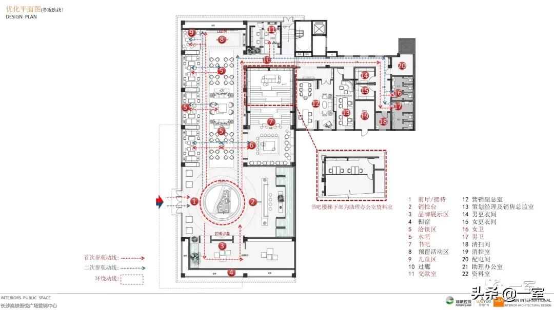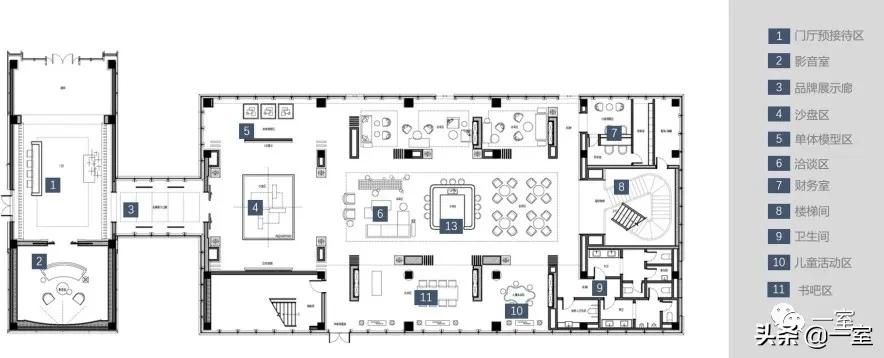 对于售楼处的设计来说,首先需要满足其所需的功能,比如接待区、展示区、洽谈区、办公区等基本功能区域,再根据实际情况,可增加儿童活动区、休闲区等辅助功能区。