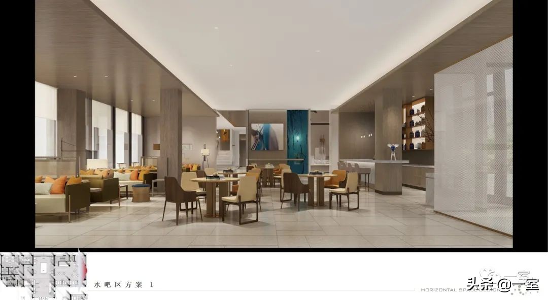 在进行效果图的展示时,可以采用和平面图结合的方式,能更直观地将效果图与相应的空间对应起来,也更易于理解。