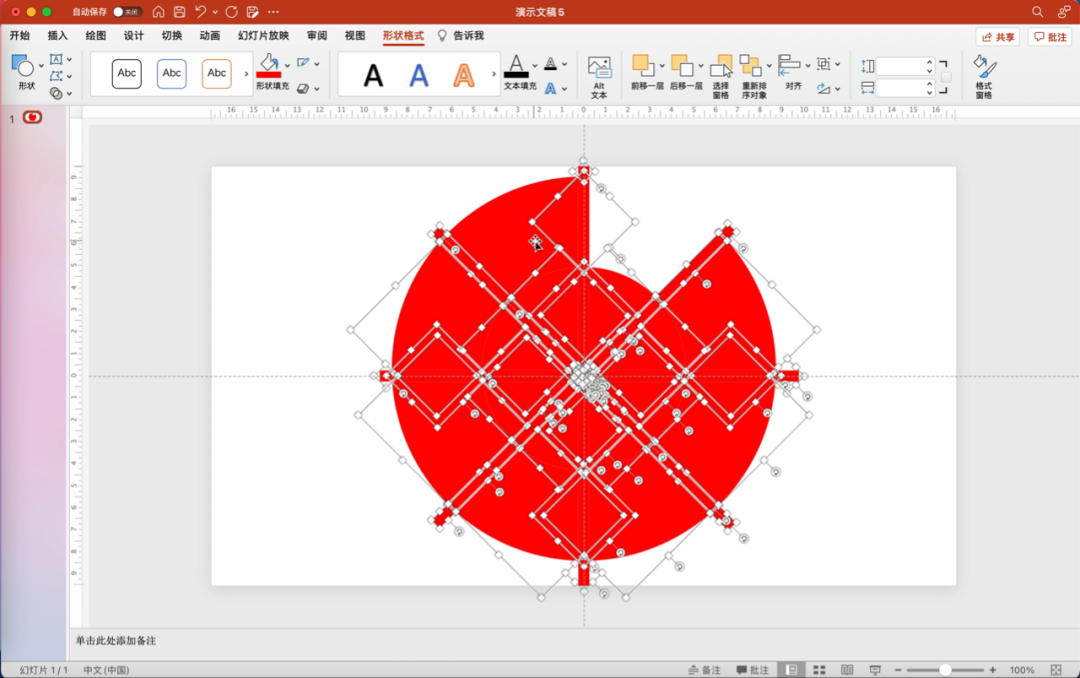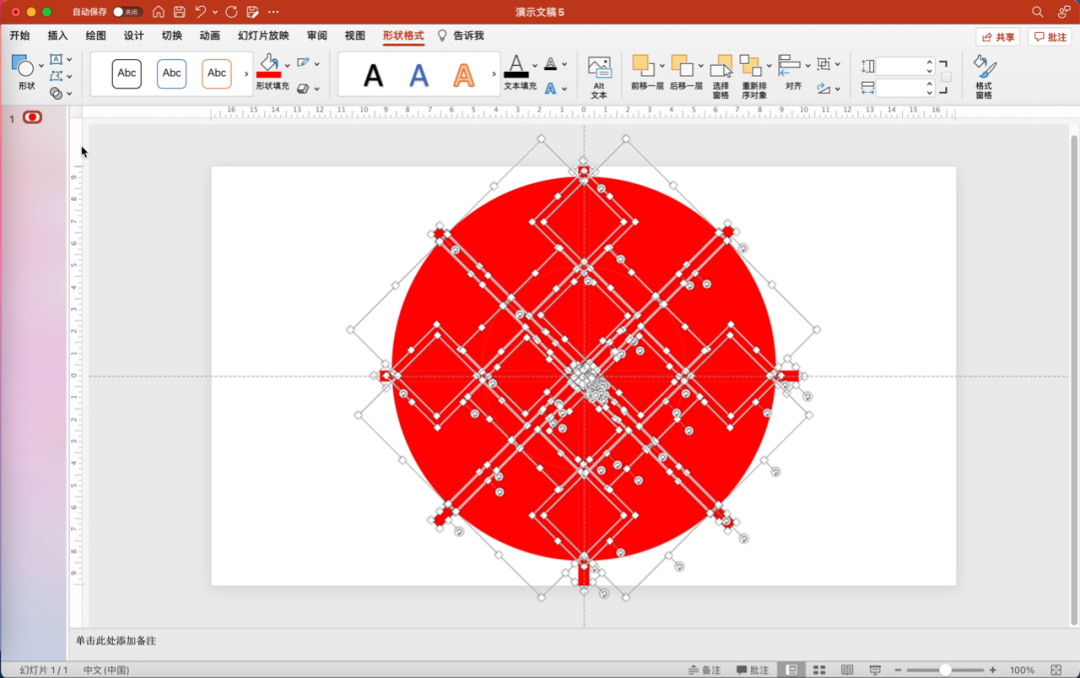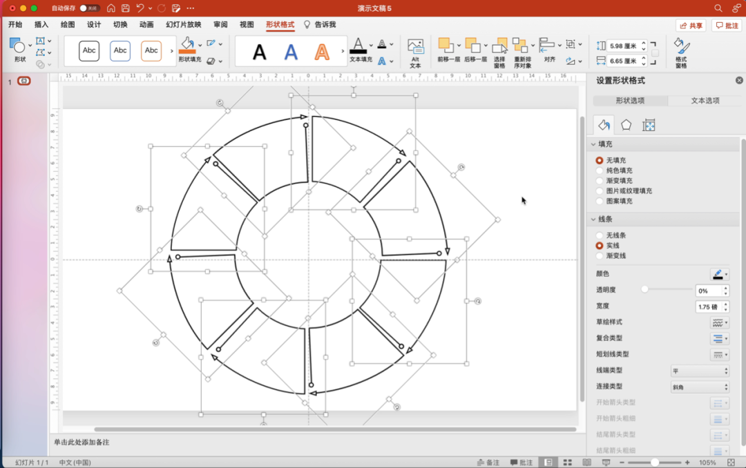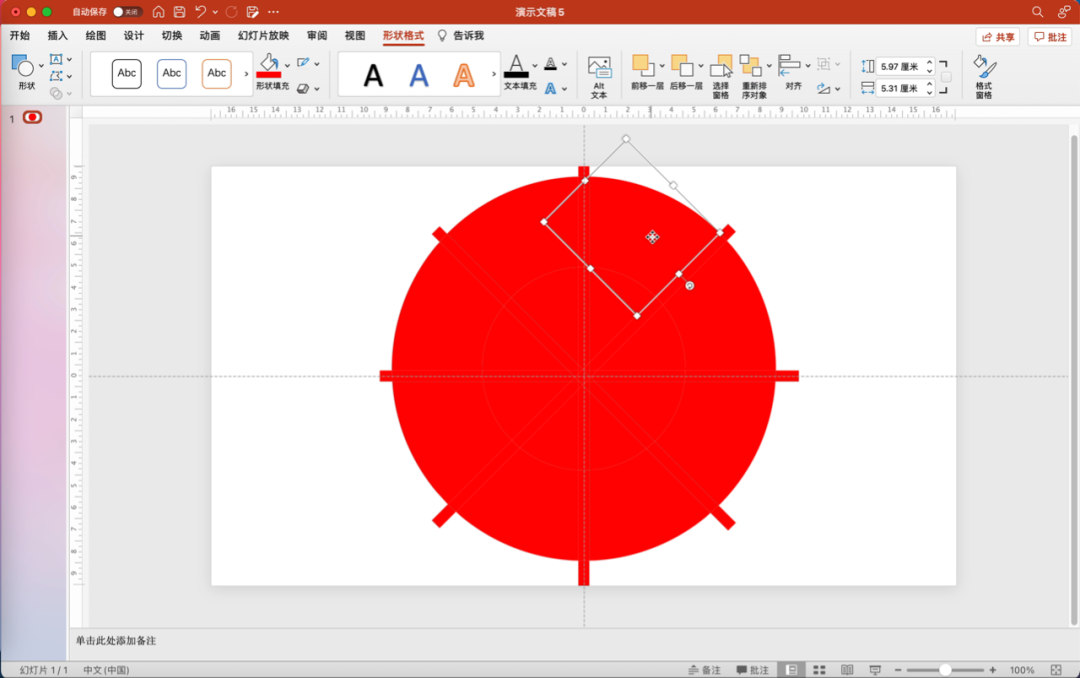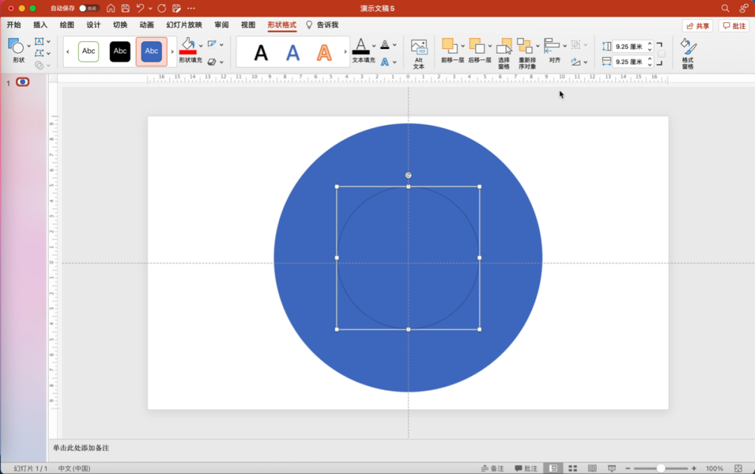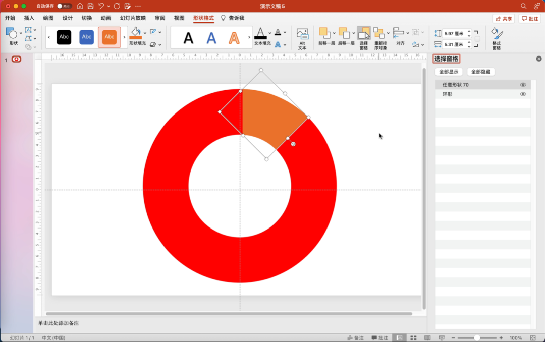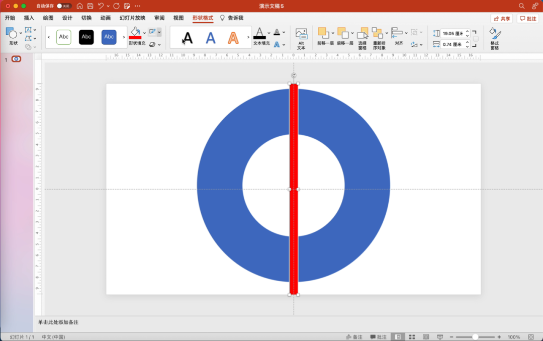 选中两个圆形,单击“形状格式-剪除”获得环形,