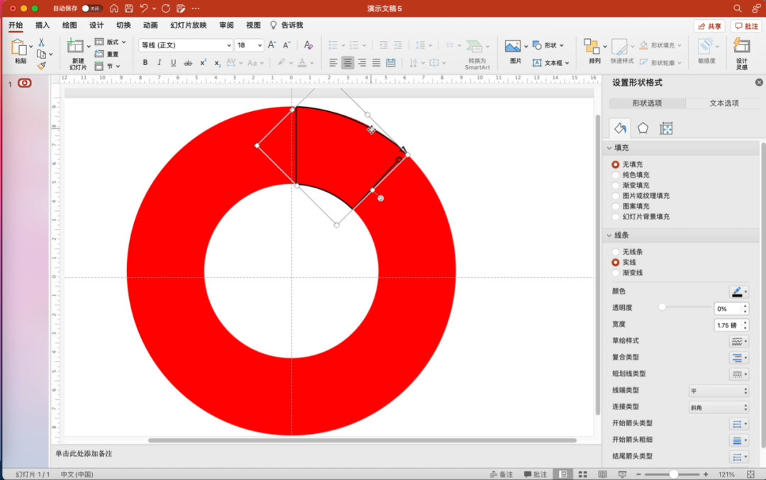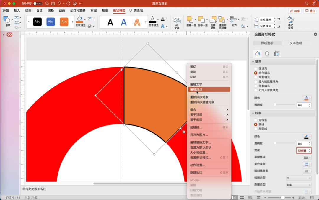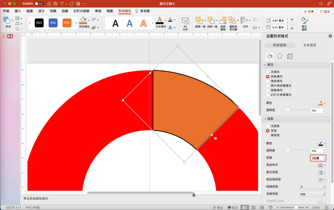 在形状设置中设置扇形的边线,加粗到2.5磅。