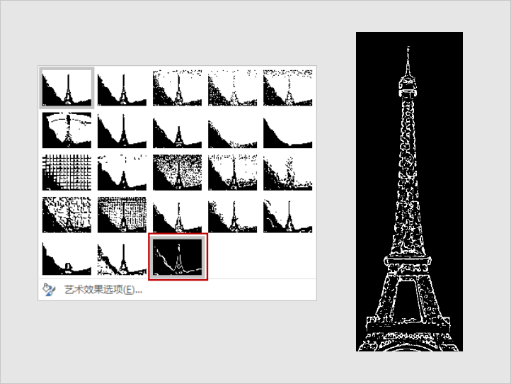 步骤03:选择艺术效果为发光边缘,让原黑色部分反白。