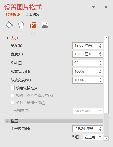 右击图片,在弹出的菜单中单击"设置图片格式"命令,打开"设置图片格式"对话框。在该对话框中,切换至图片大小与属性设置界面,在这里可以设置图片的水平和垂直位置、宽度、高度、旋转方向的角度等,更精确地调整图片位置、大小和方向。