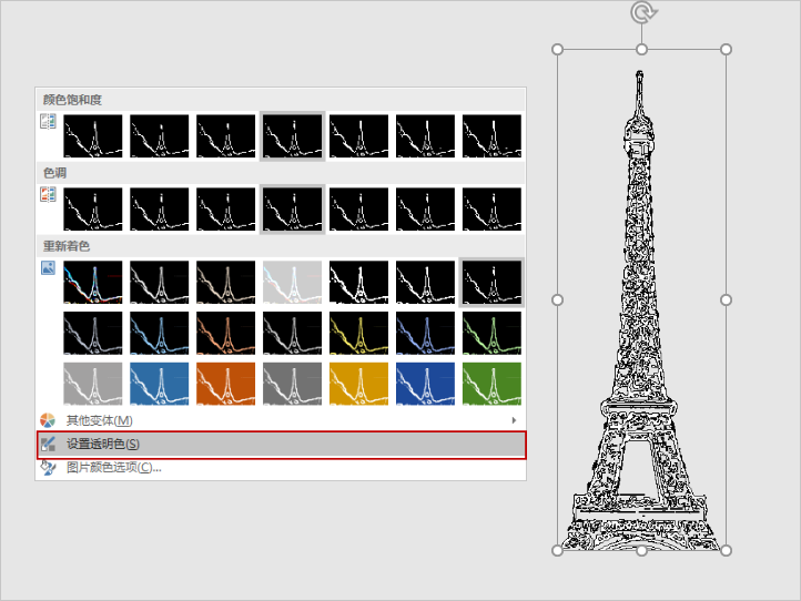 步骤04:设置透明色,点击图片上的黑色,去掉黑色背景,线条画初步完成。