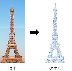 借助发光边缘效果,可以将图片转变成单一色彩的线条画。将图中埃菲尔铁塔原图变成线条画,具体的方法如下: