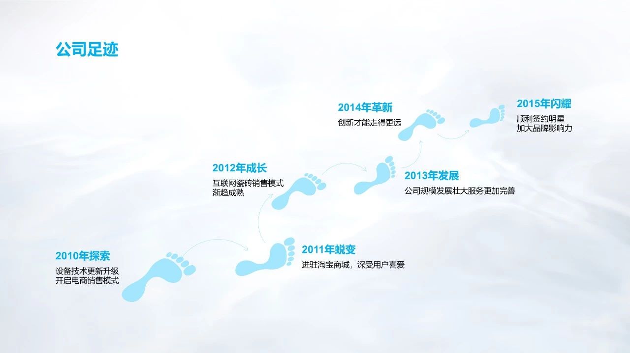 按照这个思路,我们也可以利用脚印来代替时间轴,来表示公司的发展足迹: