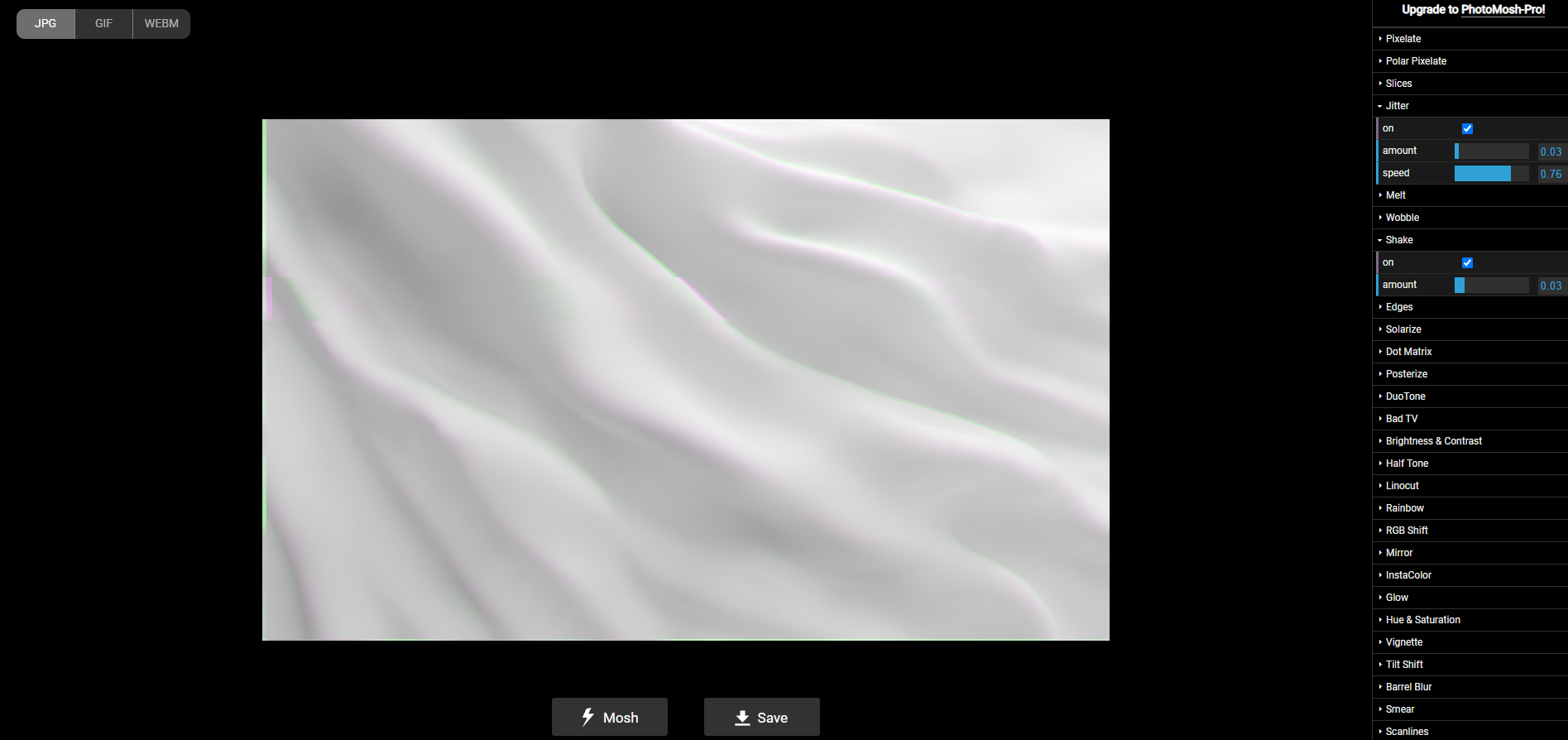 我们需要先准备一张图片,将它上传到这个网站,点击 网站下方的 [Mosh],就能得到不同的效果: