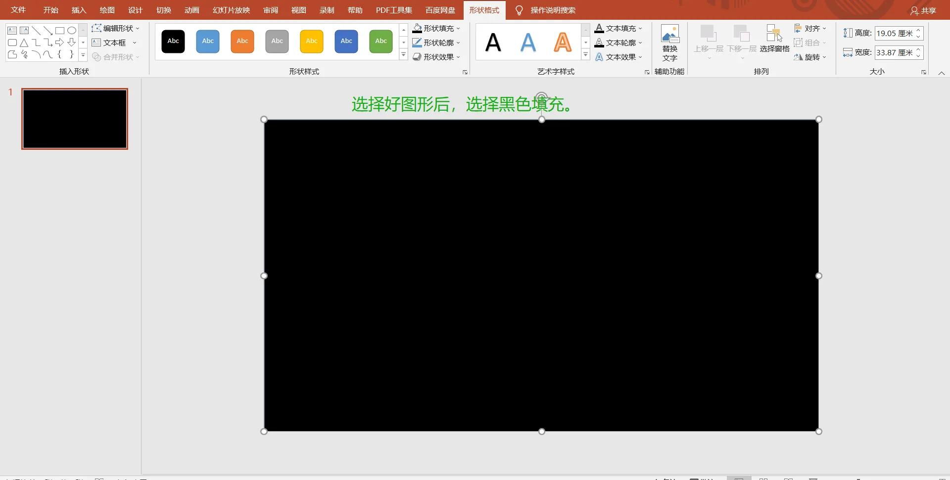 第二步:将图片设置为ppt大小,将图片填充修改为黑色。让图形作为ppt背景。
