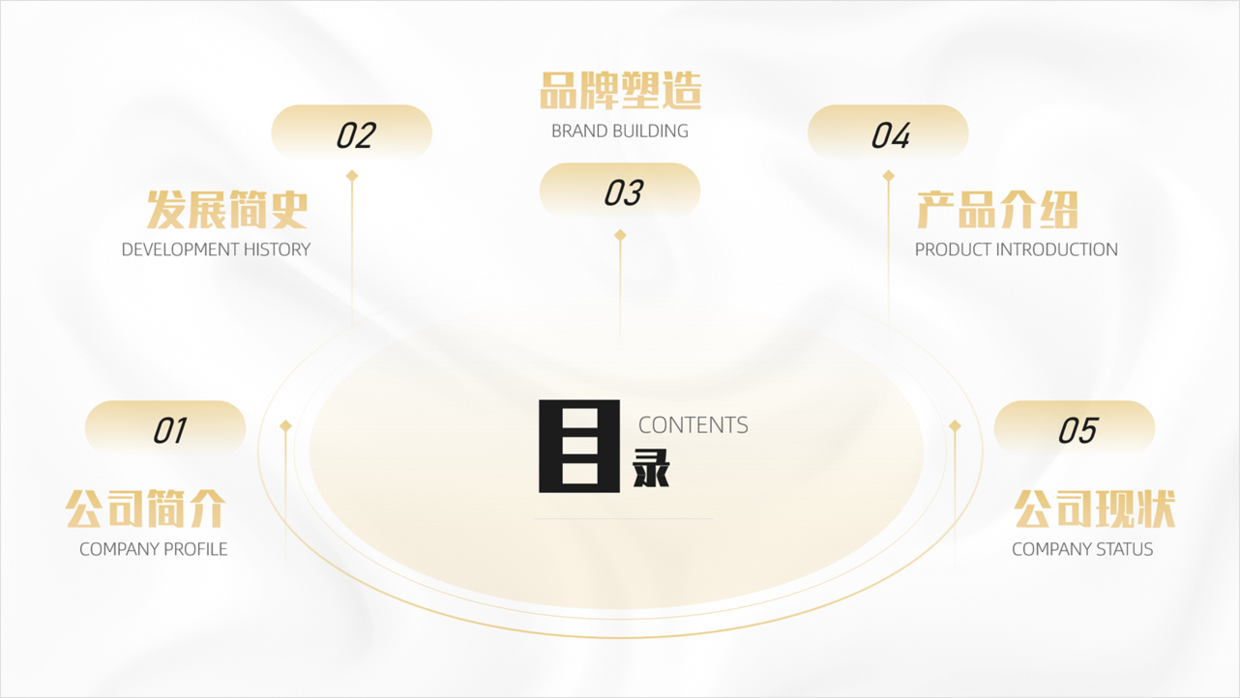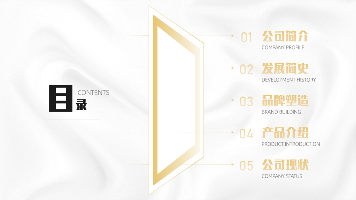 像这种企业类型的PPT目录页,完全可以做的更加有设计感。