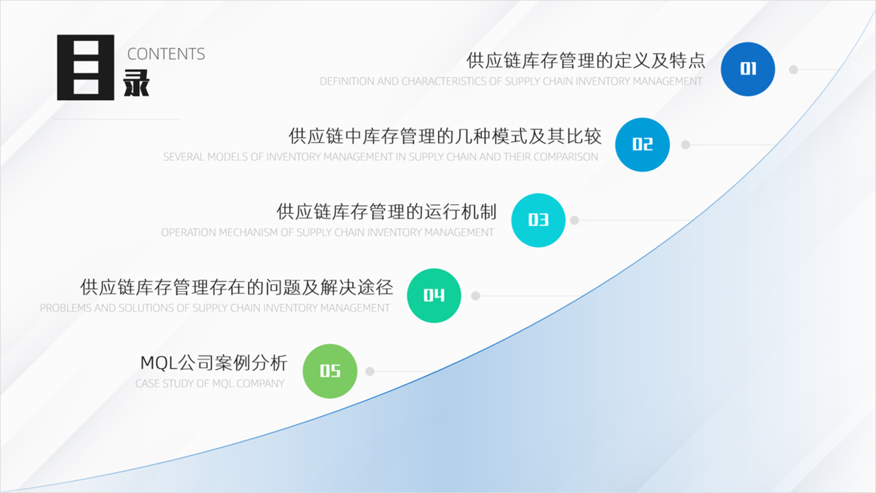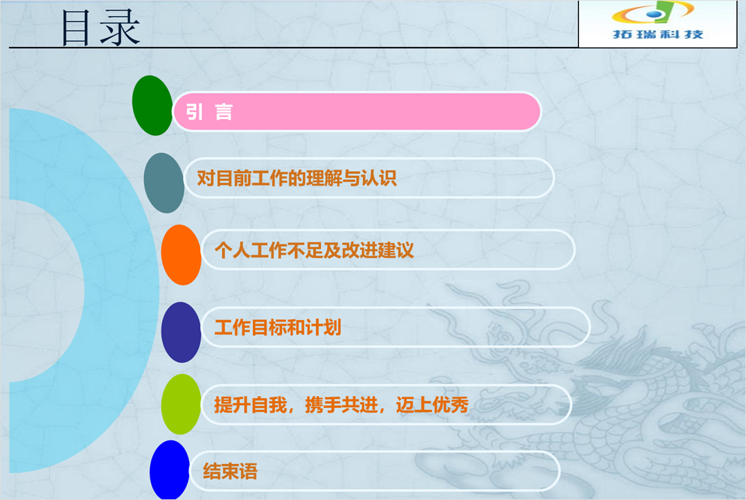 对于目录页的设计,大家也不能太小觑,毕竟这是展示PPT的主要框架内容。