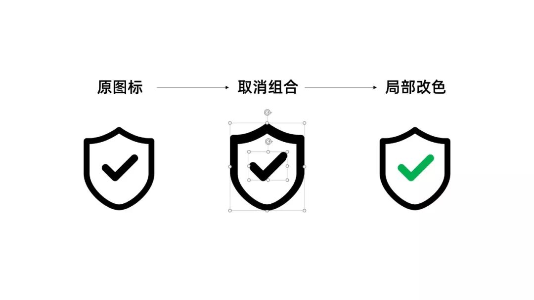 最后,我们把图标取消组合,并对局部进行改色即可: