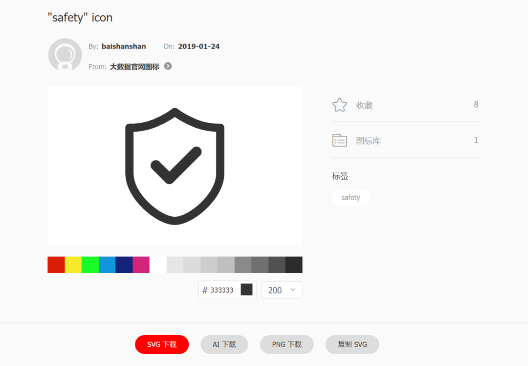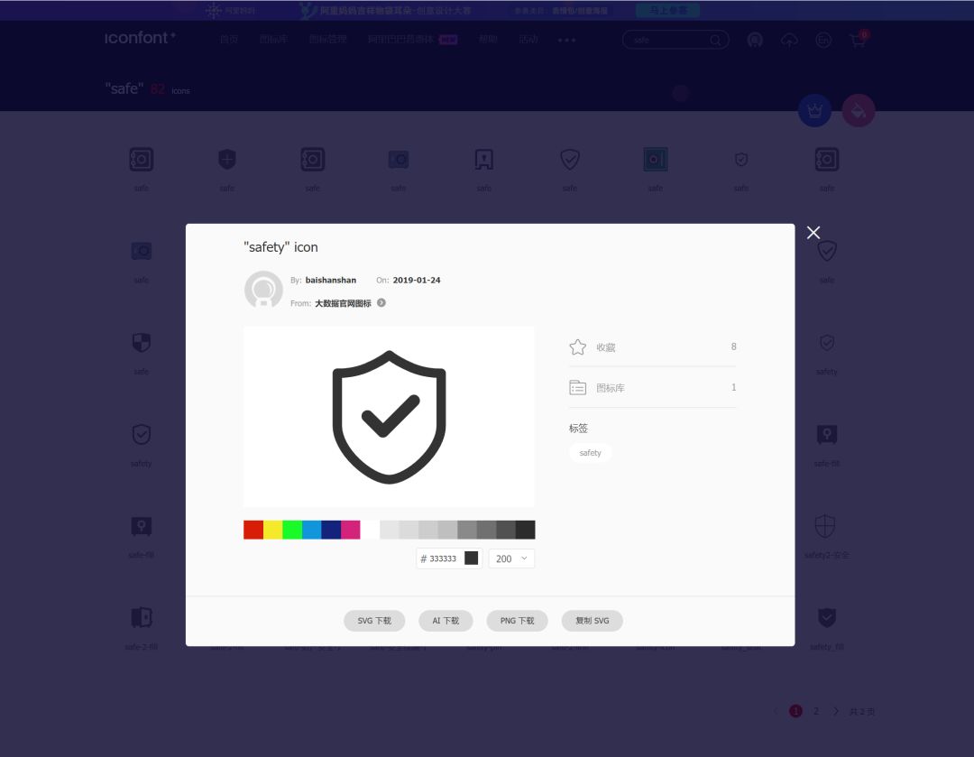 这里以阿里巴巴图标素材库为例,我检索的是<安全>: