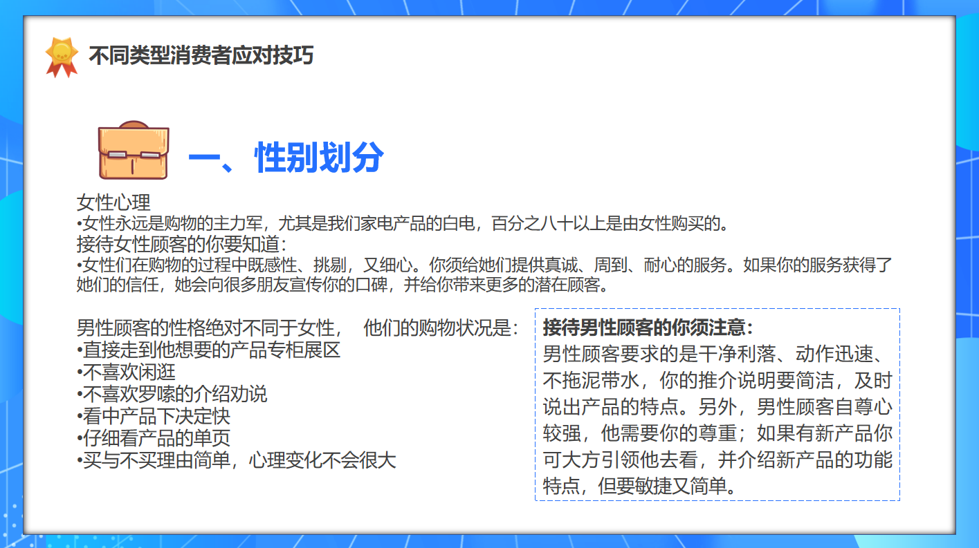 Hello大家好,我是帮帮。今天跟大家分享一张导购员销售技巧PPT模板,全内容教学演示课件,完整排版直接用。