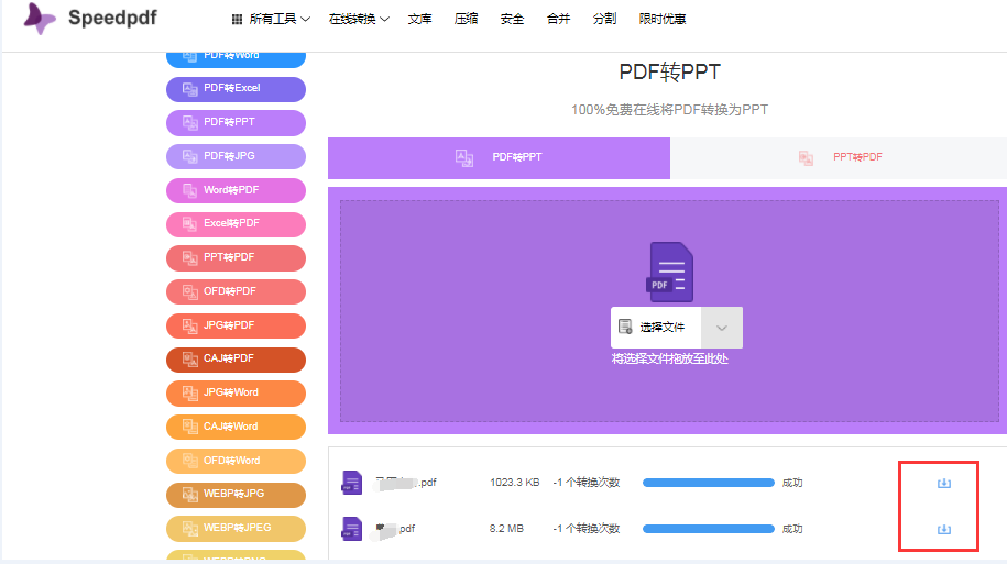 使用工具:speedpdf在线转换